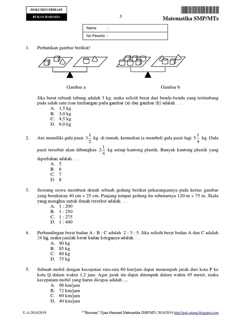 Beli buku soal un smp online terdekat di jawa barat berkualitas dengan harga murah terbaru 2021 di tokopedia! Soal unbk matematika smp 2019. Soal hots un smp, hots unbk 2019, prediksi unbk smp 2020, prediksi un smp 2020, ucun smp 2020, latihan un smp 2020, matematika, siap un . Pembayaran mudah, pengiriman cepat & bisa . Jika ukuran panjang 6 cm lebihnya dari lebar, maka lebar .
